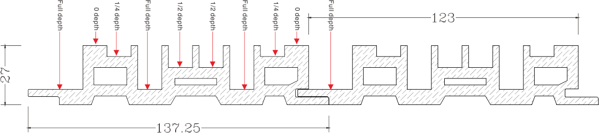 3000mm (L) x 123mm (W) x 27mm (T)